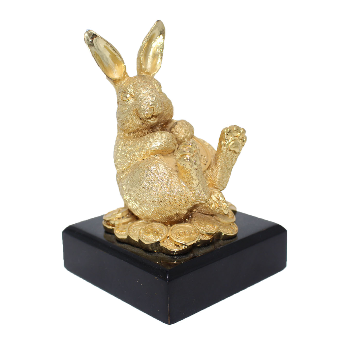The Wealth Rabbit sitting on a bed of gold coins brings excellent wealth and speculative luck to its owner. Display in the East to reveal all your hidden wealth.